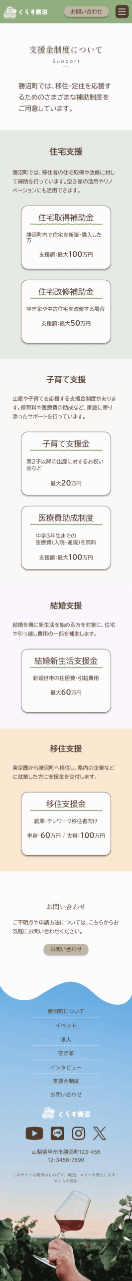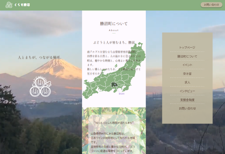 職業訓練のグループワークで、山梨県勝沼町の移住サイトをテーマにしたWebサイトを制作しました。
